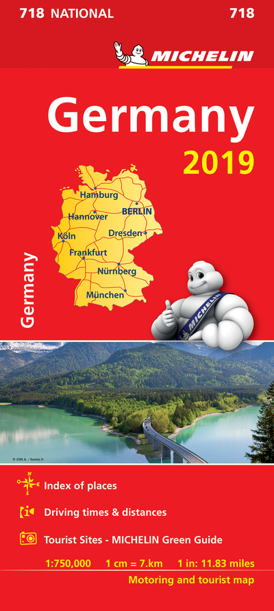 - Updated annually, MICHELIN National Map Germany (map 718) will give you an overall picture of your journey thanks to its clear and accurate mapping scale 1/750,000. Our map will help you easily plan your safe and enjoyable journey in Germany thanks to a comprehensive key, a complete name index as well a clever time & distance chart. Michelin's driving information will help you navigate safely in all circumstances. In addition, MICHELIN National Map Germany is cross-referenced with the famous MICHELIN Green Guide highlighting destinations worth stopping for! With MICHELIN National Maps, find more than just your way! MICHELIN NATIONAL MAPS feature: * Up-to-date mapping * A scale adapted to the size of the country * A clear and comprehensive key * Distance and time chart * Place name index * Driving and road safety information * Tourist sights information Our maps are regularly updated even if the ISBN does not change.