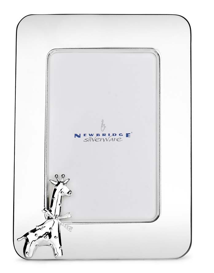 Silver plated with a protective anti tarnish layer. Perfect new baby gift. Giraffe design. Suitable for personalisation. Fits 4" x 6" photo