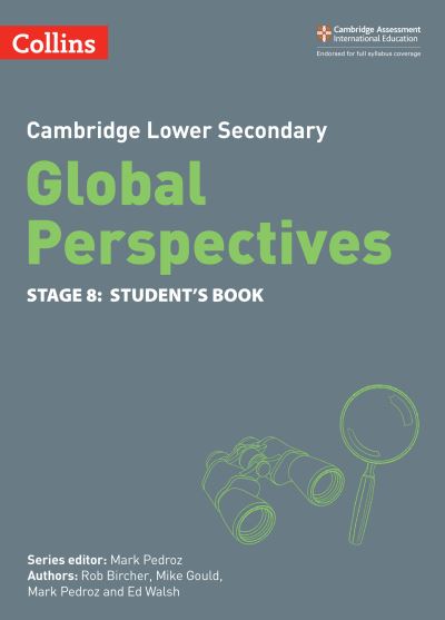 - The Collins Cambridge Lower Secondary Global Perspectives series offers a skills-building approach to the Cambridge curriculum framework (1129) from 2022. The resources support students to develop skills in analysis, collaboration, communication, evaluation, reflection and research, exploring global issues through rich international sources.This title has been endorsed by Cambridge Assessment International Education for the Cambridge Lower Secondary Global Perspectives curriculum framework (1129) from 2022.This book provides full coverage of the Stage 8 Cambridge Lower Secondary Global Perspectives curriculum framework.Focused on improving skills: each chapter revisits the objectives from Stage 7, extending and deepening these skills through a structured sequence of active learning towards a collaborative final task.Empower students to engage with a range of contemporary issues and perspectives. In Stage 8 these relate to the syllabus topics, 'Environment, pollution and conservation', 'Climate change, energy and resources', 'Development, trade and aid', 'Migration', 'Change in cultures and communities', 'Digital world' and 'Law and criminality'.Help students to assess their progress and understand how to improve: the final chapter asks students to apply the skills they have learned across Stage 8, by drafting a model UN resolution, taking part in a model UN debate and reflecting in writing on what they have learned.Encourage reflection through structured Reflection points in each lesson and a self-assessment Check your progress feature at the end of each chapter.The clear lesson-by-lesson approach allows teachers to easily use the resources in the classroom and build them into their own schemes of work.The Collins resources can be used as preparation for the Challenges, if schools wish, as each chapter in the Student's Book links to the skills and topic focus of a Stage 8 Challenge.