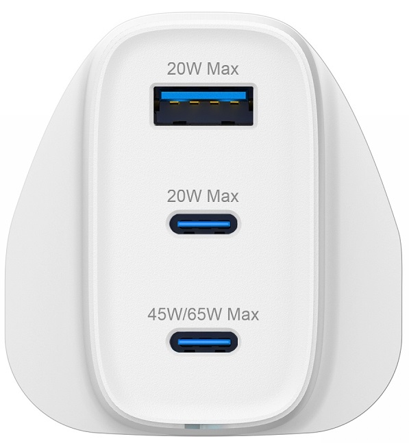 Groove 3-Port USB Mains GaN Charger 65W Power Delivery - White