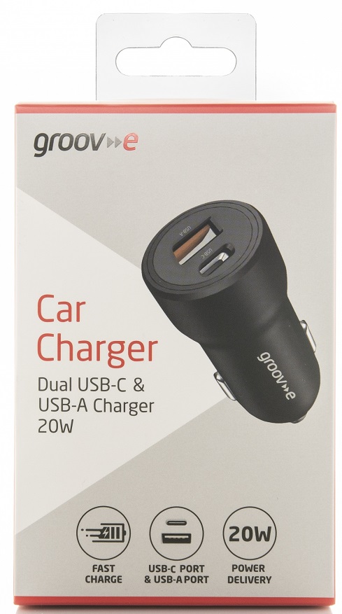 Groove Dual USB-C & USB-A Car Charger 20W - Black