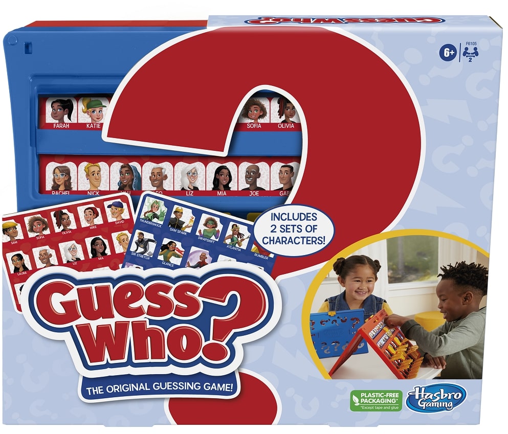 Bring back childhood memories of playing the classic Guess Who? game, and introduce this edition of the original guessing game to your children and grandchildren. With the Guess Who? board game, each player chooses a mystery character card and then using yes or no questions, they try to work out the other player's mystery person. The game features two double-sided character sheets including one with superhero characters. The character sheets easily slide in and out of the frame, making the game easy to set up. And the convenient fold-up case makes it a great choice for on-the-go play. The Guess Who? two-player game is a great indoor activity for children aged 6 and up. Hasbro Gaming and all related terms are trademarks of Hasbro.
