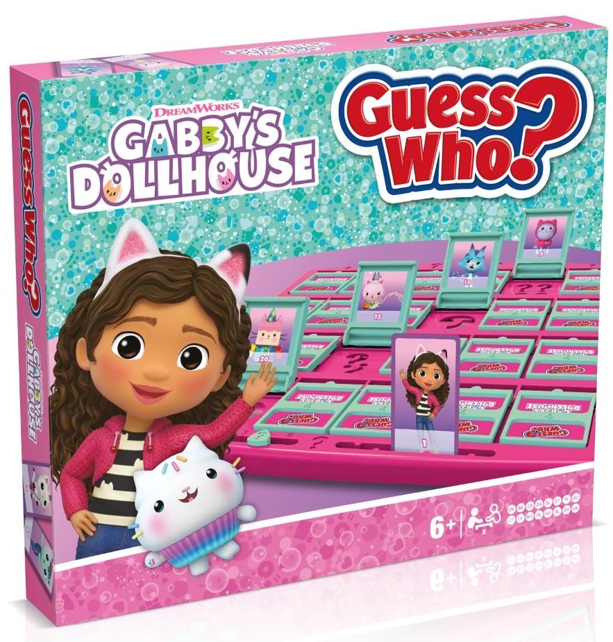 Introducing Guess Who Gabby's Dollhouse Edition, the purr-fectly charming guessing game inspired by the delightful world of Gabby's Dollhouse! Join Gabby and her adorable friends for a guessing game adventure that's full of fun and surprises. Step into the magical world of Gabby's Dollhouse with Guess Who Gabby's Dollhouse Edition! Join Gabby, Pandy Paws, and their furry friends for a game of deduction and excitement that will delight players of all ages.
