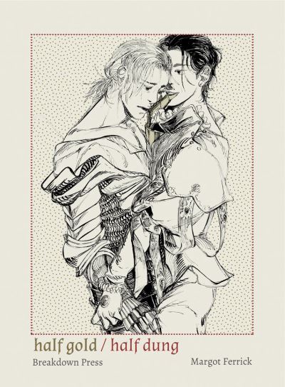 - Breakdown Press is thrilled to be publishing Half Gold / Half Dung, a new work by Margot Ferrick. Melding the worlds of video games, courtly romance and classic illustration with a striking eye for the nuance of how bodies interact, this is an outstanding collection of new drawings and comics, ably demonstrating the work of a rising star of the medium. Inside the pages of the book the reader will meet knights and wizards, thieves and kings, together and apart, and standing alone. A rumination on what beauty can both hide and convey, and the beatific nature of suffering. By using the character types and classes found in video games in the time away from their adventures, in the personal, in the poetic, Ferrick allows the reader to see a side of characters that they themselves have played borne out in her haunting, personal line. A striking new work by one of the rising new stars of comics, this release is supported by the simultaneous release of Star of Swan, also from Breakdown Press.