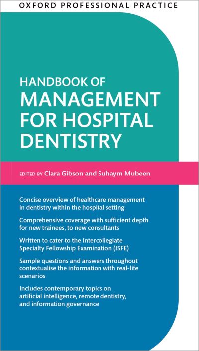 - Healthcare management in dentistry is a highly skilled and multifaceted area of expertise. Although it features heavily in any path to specialising in dentistry, it often doesn't make it to many clinical resources or books to help guide the dentist on their journey. More than ever, there is an increased focus on healthcare management within the dental syllabus, and a greater emphasis at more junior levels. Oxford Professional Practice: Handbook of Management for Hospital Dentistry covers the managerial component of the dental curricula in a concise manner, whilst pertaining to the wider NHS setting. This practical pocket-sized handbook ranges from the over-arching NHS policies, down to the daily management of staff, conflict, risks, and trainees within the dental team. Also catering to the Intercollegiate Specialty Fellowship Examination (ISFE), it is an ideal companion for trainees on the dental postgraduate pathway, right the way through to consultants in their early leadership years.
