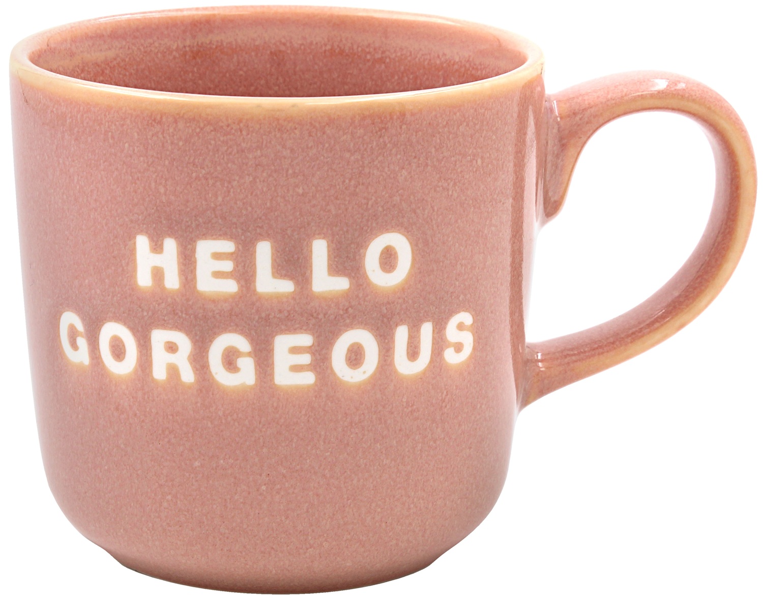 Brighten your morning routine with this Hello Gorgeous mug. Made from durable stoneware with a soft, modern glaze and raised lettering for a chic finish.