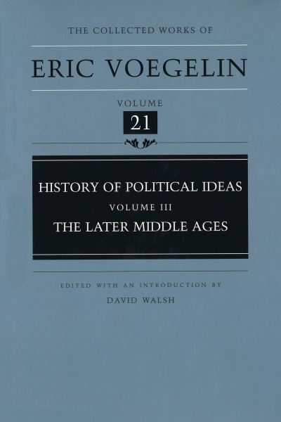 - In this text, the third volume of ""History of Political Ideas"", the author continues his exploration of one of the most crucial periods in the history of political thought. Illuminating the great figures of the high Middle Ages, Voegelin traces the historical momentum of our modern world in the core evocative symbols which constituted medieval civilization. These symbols revolved around the enduring aspiration for the ""sacrum imperium"", the one order capable of embracing the transcendent and immanent, the ecclesiastical and political, the divine and human. The story of the later Middle Ages is that of the ""civilizational schism"" - the movement in which not only the reality of but the aspiration for the sacrum imperium gradually disappeared. His recognition of this civilizational schism provides Voegelin with his perspective on medieval society. William of Ockham, Dante, Giles of Rome and Marsilius of Padua all emerge in his study as predecessors to modern thought; each turns to personal authority and intellectual analysis in an attempt to comprehend the loss of the sacrum imperium. Yet the story of the later Middle Ages is not shown to merely revolve around disintegration. Voegelin recognizes the emergence of the constitutional political tradition as the most positive development of this period. His study of the English political pattern is juxtaposed with his perspective on the German imperial zone.