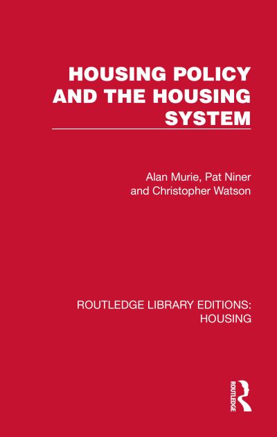 - Alan Murie is Emeritus Professor of Urban and Regional Studies at the University of Birmingham, UK. He has been involved in a wide range of research on urban and housing issues for more than 50 years: initially at the then University of Ulster and later at the Centre for Urban and Regional Studies at Birmingham University, the School for Advanced Urban Studies, Bristol University, the Department of Planning and Housing, Herriot-Watt University, Edinburgh and again at Birmingham University where he was Director of the Centre for Urban and Regional Studies and then head of the School of Public Policy.Pat Niner worked for many years at the Centre for Urban and Regional Studies at the University of Birmingham, UK. She carried out a number of policy-related research studies of different aspects of the British housing system.Christopher J. Watson (1940-2019) graduated from University of Bristol in 1962 where he gained a BA Hons degree in Geography. After leaving Bristol, he was employed as a Geography Tutor at a Field Study Centre in Northumberland for three years. He left to become an Administrative Assistant at the University of Sussex 1966- 68 and later joined the Scottish Office in Edinburgh where he worked in the Government Housing Research Unit. In 1972 he moved to the University of Birmingham where he became a Senior Lecturer in Urban and Regional Studies and undertook various aspects of Housing Research and contributed to a number of publications including Housing Policy and the Housing System (1976). He retired from the University of Birmingham in 2005, but retained his interest in housing policy and development in the UK and other European countries, also South Korea and Japan where he travelled extensively.