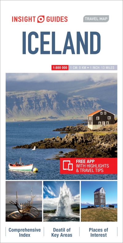 - Insight Guides Travel Map: has a fold up map of the country ideal for planning routes or taking on holiday. This Iceland Travel Map is drawn to a scale of 1:4 million and shows the entire country complete with a comprehensive index. This is an ideal on-the-move companion when you're exploring Iceland It includes detailed street plan of Reykjavik, with its own separate index Outlines Top Attractions and places of interest Pictorial symbols for instant recognition Shows countries roads, rail networks and ferry routes Includes distance indicators Detailed topography Legend shown in eight languages Insight Guides/Apa Publications are one of the UK's leading overseas road and travel map publisher.
