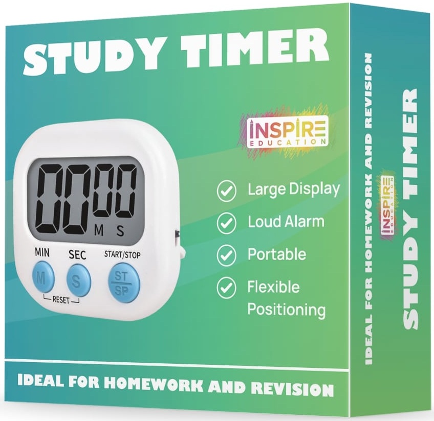 Optimise focus and minimise distraction with our Study Timer. This timer provides the perfect solution for students who want to replace the smartphone with a simple quick fix for timing study and revision sessions. It has a large display and includes a AAA battery. The timer is highly portable with a stand and magnet for flexible positioning.
