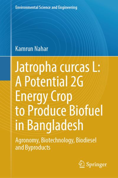 - This book addresses the opportunity to cultivate a multipurpose, drought resistant and nonfood bioenergy crop, Jatropha curcas L. in Bangladesh. As a renewable resource and a sustainable substitute for fossil fuel, Jatropha curcas produces seeds containing inedible oil, which can supply fuel and meet the national energy demands of Bangladesh. The plant does not need arable lands and does not compete with food, water and nutrients. This book also highlights the land use patterns and possible cultivation areas of Bangladesh. It is based on research of the cultivation technology, ecological and agronomical aspects, biotechnological methodologies, harvesting and crop yield including fuel and byproduct formation. It also highlights the different uses and socioeconomic benefits of the plant and production costs and briefly describes the procedure for the production of biodiesel and other useful byproducts. The comparison of biodiesel from Jatropha curcas with conventional fossil fuel is also discussed as well as its ability to sequester carbon from the environment to cope up with climate change, adaptation as well as mitigation