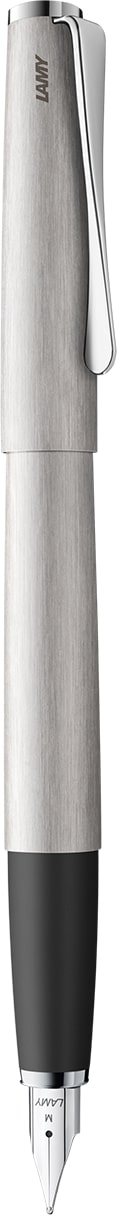 Fountain pen, brushed steel finish, steel propeller-shaped clip, steel nib, polished with ink cartridge LAMY T 10 blue can be used with converter LAMY Z 27