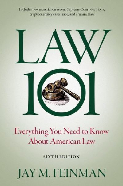 - An authoritative and up-to-date introduction to the American legal system. In this sixth edition of his bestselling classic, Jay Feinman provides an authoritative and up-to-date overview of the American legal system. In the years since the publication of the fifth edition, there have been many important developments on the legal front. The Supreme Court has become more conservative and is in the process of handing down important decisions that will change the law on affirmative action, abortion, gun rights, presidential power, and religious rights. Feinman covers all of this and expands his discussion of originalism, the guiding philosophy of many conservative jurists serving on the federal bench now. He also addresses the rapidly changing legal landscape in a variety of issue areas: race and the criminal justice system, cryptocurrency, and tort reform, among others. This fully updated edition of Law 101 accounts for all these developments and more, as Feinman once again covers all the main subjects taught in the first year of law school. Drawing from noteworthy, infamous, and even outrageous examples and cases, he discusses every facet of the American legal tradition, including constitutional law, the litigation process, and criminal, property, tort, and contract law. A key to learning about the law is understanding legal vocabulary, and Feinman helps by clarifying terms like "due process" and "equal protection," as well as by drawing distinctions between terms like "murder" and "manslaughter." Above all, Feinman reveals to readers of all kinds that despite its complexities and quirks, the law can be understood by everyone. Perfect for students contemplating law school, journalists covering legislatures, or even casual fans of "court-television" shows, Law 101 is a clear and accessible introduction to the American legal system.