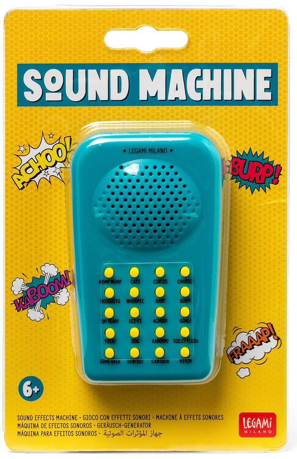 - Have a blast with your friends and the Legami Sound Machine with fun sound effects. Featuring 20 different sound effects, you can blast out the roaring sounds of the circus, the irritating buzz of a mosquito, or even a toilet flush to signal your mood as needed. 20 different sound effects Batteries: 3 AG13 (included for the “try me” function;replacement may be required)