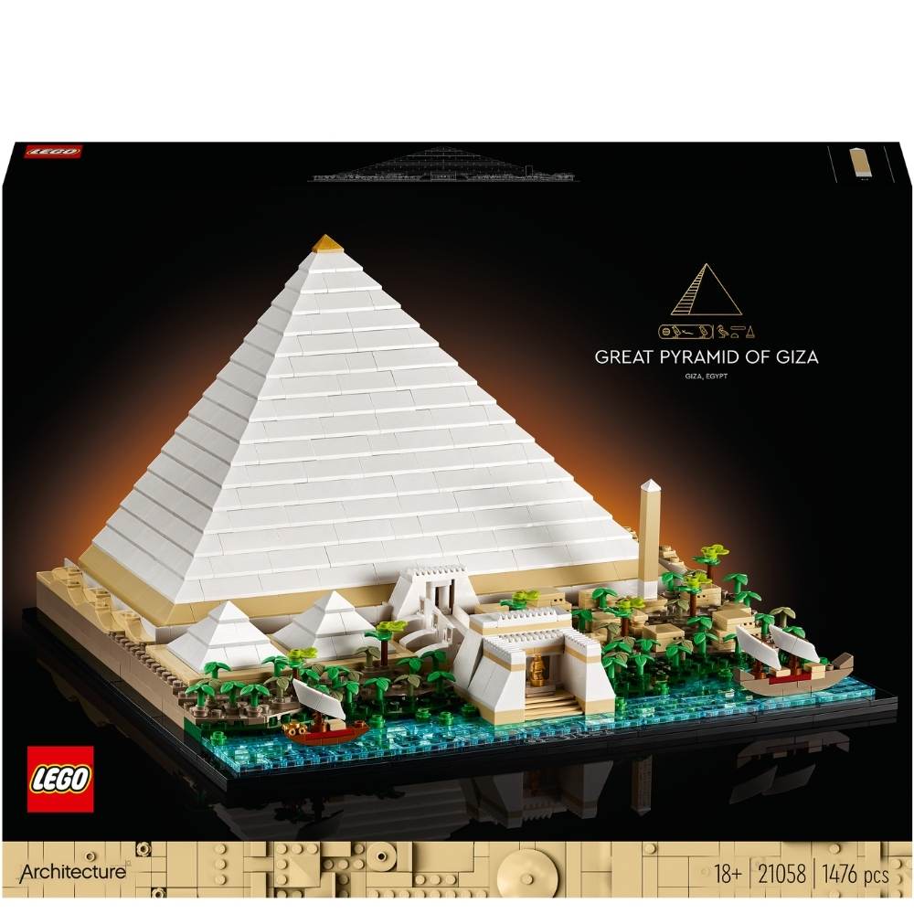Take an imaginative leap back in time to the 26th century BC and experience the building of one of the Seven Wonders of the Ancient World with this LEGO Architecture Great Pyramid of Giza (21058) model building kit for adults. This model contains everything you need to build the pyramid and its surroundings. See what the area along the Nile River is believed to have looked like in ancient times.
