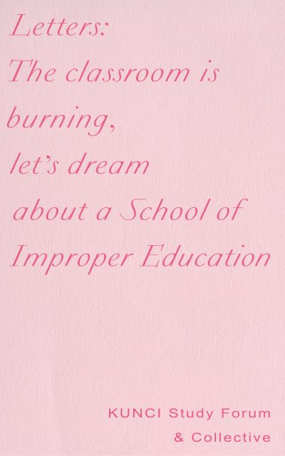 - Since its founding as a cultural studies group in 1999 in Yogyakarta, Indonesia, KUNCI Study Forum & Collective has experimented with methods of producing and sharing knowledge through acts of collective study at the intersections of affective, manual, and intellectual labor. This pamphlet is a collaboratively authored epistolary essay that narrates the discourse behind the development of KUNCI's School of Improper Education, an initiative that posits studying together as a tactical approach to create the conditions for social movement. Founded in 2016, The School of Improper Education is an avenue through which unlearning can be practiced, where unknowingness can be transformed into a series of productive tools for understanding the contemporary social ecosystem and articulating the resourcefulness of an independent art and cultural organization.