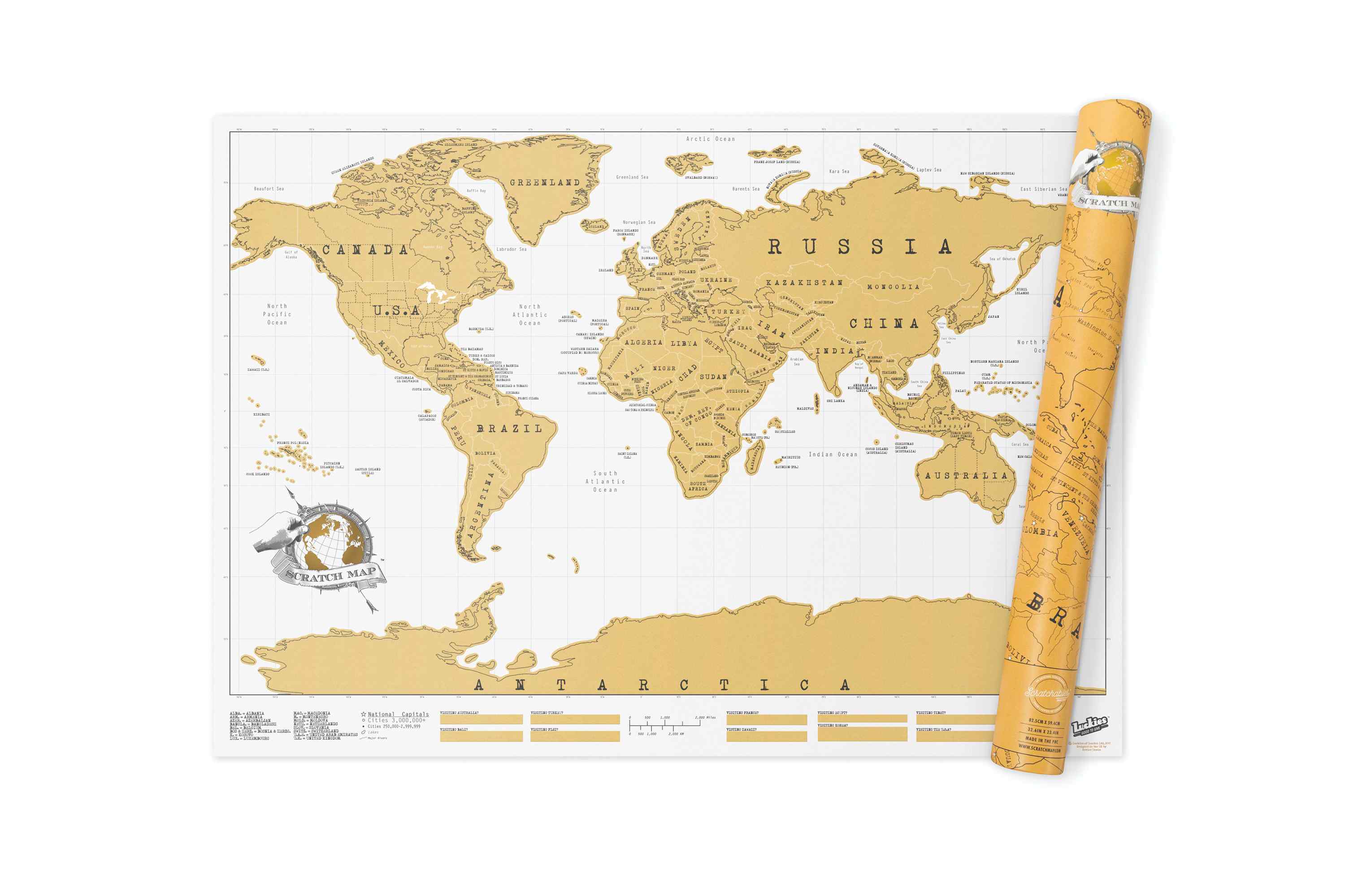 Where the Scratch Map® map concept started – Scratch Map Original® map is the first Scratch off Map poster we ever designed. Scratch Map® Original map has since become our best selling product, and seems to be a universally popular gift with young and old alike. Whether it’s for your jet set sister’s birthday, or a well travelled uncle, Scratch Map Original map will look great on any wall! Scratch Map Original map features a gold foil top layer which means that once a country has been visited, the intrepid traveller gets to remove the gold foil layer to reveal beautifully vibrant colours and detail beneath. You’ll soon find yourself making excuses not to holiday in the same place every year, or trying to convince your other half you simply must visit Antarctica – all because the race to reveal the Scratch Map poster in it’s naked form with no foil left has got the better of you. Thought you weren’t competitive? You will be when you get your Scratch Map map and catch the wanderlust bug…