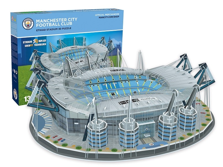 Are you searching for the perfect gift for a Manchester City fan? Well it's time to call off your search thanks to the exciting new 3D puzzle which features one of the UK's most famous stadiums - the Etihad stadium. This high quality replica stadium puzzle is designed for children aged seven and upwards although younger children may need a bit of help from Mum or Dad. It's fantastically rewarding to create and a great family activity. The Etihad stadium can be recreated in spectacular colour and detail in around three-five hours without the need for scissors, tools or glue making it a must for all Manchester City fans. This sturdy stadium features pieces which slot together requiring inventiveness, skill and patience to create a strikingly detailed model of Manchester City's home ground. The Etihad stadium is perfect for individuals who like a challenge but it also works wonderfully as a family activity - great for banishing school holiday boredom and a fantastic rainy day activity. This is a unique gift with a difference - perfect for any Manchester City fan and anyone who enjoys football and a bit of a challenge! The puzzle contains 132 pieces. Suitable for age 7 years and over.