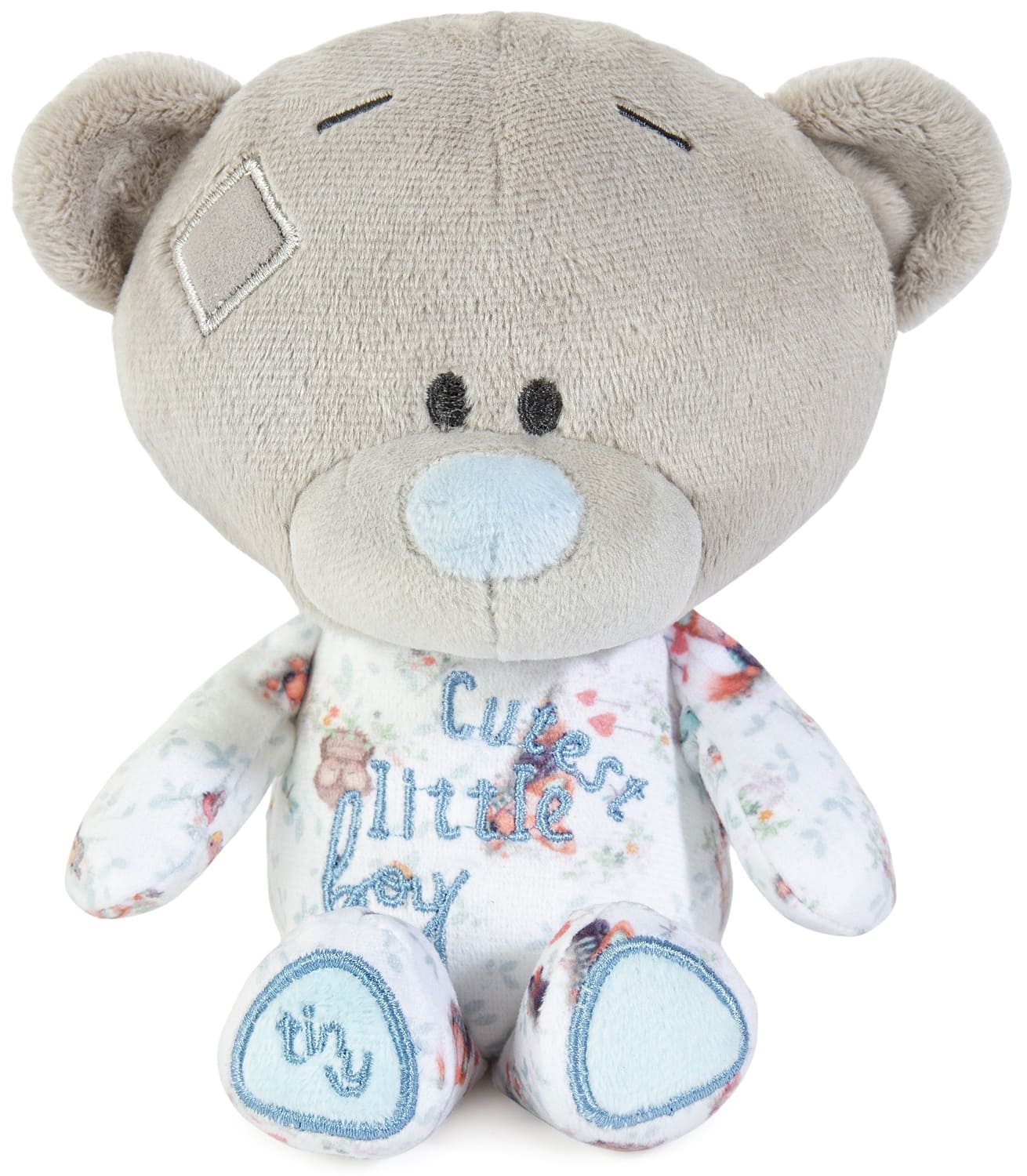 - ADORABLE PLUSH BEAR FOR A NEW BABY BOY - this cute Tiny Tatty Teddy bear is crafted from super soft fabric and wears a sweet little jumpsuit decorated with a woodland-inspired print and embroidered with the caption 'Cutest little boy'. Materials : Polyester. Dimensions: 150mm. Weight: 68g. Remove all tags and packaging before giving to a child under 3 to avoid choking hazards