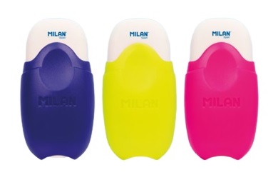 Oval Eraser 1012 with rigid protective cover Fluo series, available in 4 fluo colours: yellow, orange, red and pink. Soft synthetic 1012 rubber eraser oval shaped. Can be used to erase a wide range of graphite pencils on all types of paper. Assorted colours: yellow, orange, pink and green. MILAN erasers are manufactured in Spain since 1918. ONE COLOUR SELECTED AT RANDOM