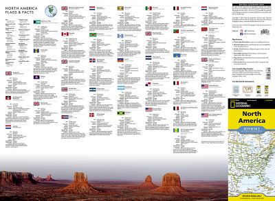 - Waterproof Tear-Resistant Reference Map. Expertly researched and designed, National Geographic's North America Flags and Facts Map is the authoritative map of North America by which other reference maps are measured. The map side includeds a political map showing countries, cities and other landmarks and a physical map shows the landforms such as mountain ranges and rivers. Clearly defined boundaries, major cities, and physical features Hundreds of place names carefully placed to maintain legibility in heavily populated areas Includes North America and adjacent regions within Asia and South America Detailed physical map of North America with mountain ranges, plains, lakes, and rivers Flags and facts with detailed information about cultural and physcial attributes Printed in the U.S.A. on extremely durable, waterproof, and tear-resistant material This Reference Map is printed on durable synthetic paper, making it waterproof, tear-resistant and tough - capable of withstanding the rigors of any kind of use in the home or classroom.