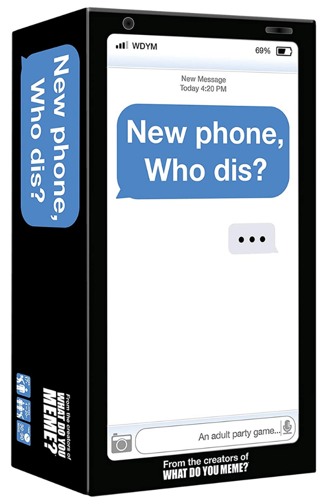 New Phone, Who Dis? Adult Party Game by What Do You Meme® is the 100% offline, text message party game. Compete with friends to create the funniest text message thread. Pair hilarious texts and replies to impress the judge and win the round!