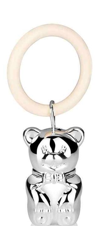 This elegantly designed teddy bear rattle is the perfect keepsake for new parents or as a christening present.