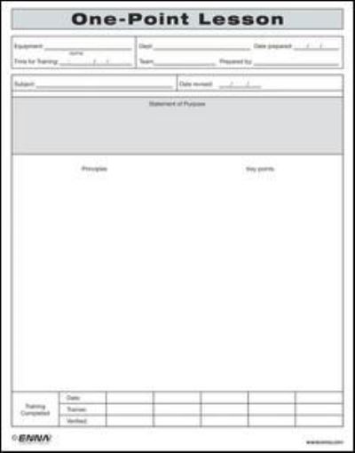 - This form is a tool that helps to effectively and efficiently communicate TPM training concepts to participants and employees. The One-Point Lesson form is structured to motivate the trainer to establish all important activities onto one simple and easy to use form.