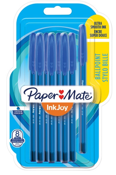 Spread joy with vivid colour! Paper Mate InkJoy 100ST ballpoint pens have a smooth, fast-starting writing system that spreads ink easily so writing’s never a drag. Even work or school is fun when you can choose from a rainbow of ten brilliant colours and enjoy ink that flows as freely as your thoughts. Brighten up every page and make writing more exciting with Paper Mate InkJoy ballpoint pens.Includes: 8 blue ballpoint pens.