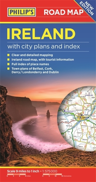 - PHILIP'S BEST-SELLING RANGE OF BRITISH AND EUROPEAN MAPS'The clearest and most detailed maps of Europe' David Williams MBE, CEO, Gem Motoring Assist.- The perfect planning map for your trip to Ireland- Scale 16 miles to 1 inch = 1:1,000,000- Double-sided folded map with full index of place names- Super-clear mapping- All major routes shown- Town plans: Belfast, Cork, Derry/Londonderry and Dublin- Scenic routes- AutoRoute junctions, restricted junctions, toll motorways and pre-pay motorways- Mountain passes and gradients- Tourist attractions.