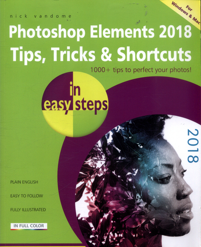 - Photoshop Elements 2018 Tips, Tricks and Shortcuts in easy steps not only offers a comprehensive guide to getting up and running with the software, but goes further: providing a wealth of detail in ways to progress to more advanced photo-editing and also find some of the hidden secrets of the software. Although the book looks at some of the ways you can expand your photo-editing exploits, it does not forget new users or anyone who wants to brush up on the basics. Areas covered include: Navigating around Elements and organizing images.Using Quick Wins for removing unwanted objects, and Guided edits to create special effects. Using Text and Drawing tools to add and editionit text. Sharing your photos in a range of formats, such as photo books or cards, and on social media. New key features such as Auto Curate, Artistic Overlays, opening closed eyes, adding watercolor, and replacing backgrounds in your photos.Layered images, reducing camera shake or haze, removing imperfections, creating impressive text, removing red-eye, and more. Photoshop Elements 2018 Tips, Tricks and Shortcuts in easy steps has something for everyone: an in depth introduction for new users, and a range of options for those who want to take their photo-editing to the next level. Throughout, there are hundreds of tips and handy hints so that you will feel like an Elements expert in no time. Covers versions for both PC and Mac users