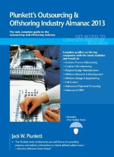 - Outsourcing of all types, offshoring of business processing, offshore contract manufacturing and globalization in general continue to create massive change in the world of business. This revolution creates both opportunities and challenges for organisations, managers and professionals of all types. Plunkett's Outsourcing & Offshoring Industry Almanac covers these sectors in detail. We provide you with our famous industry trends analysis, statistical tables and a glossary, along with a database of industry contacts, including associations and professional societies. We analyse topics such as captive offshore facilities; insourcing; IT oursourcing; BPO; KPO; offshored professional services such as accounting and design; offshored clinical trials; and outsourced logistics and distribution. And, you receive our proprietary, in-depth profiles of 350 leading companies in all facets of this industry**x2014;public and private companies, U.S. and non-U.S. based. Our company profiles include complete business descriptions and up to 27 executives by name and title. Purchasers will find a form in the front of the book enabling them to register for 1-year, 1-seat online access to special tools at Plunkett Research Online, including the ability to view the market research/industry trends section and industry statistics. In this manner, you have online access, at no additional charge, to the very latest data posted to Plunkett Research Online for one year. Online tools will enable you to search, filter and view selected companies, and then to export selected company contact data, including executive names. You'll find a complete overview, industry analysis and market research report in one superb, value-priced package.