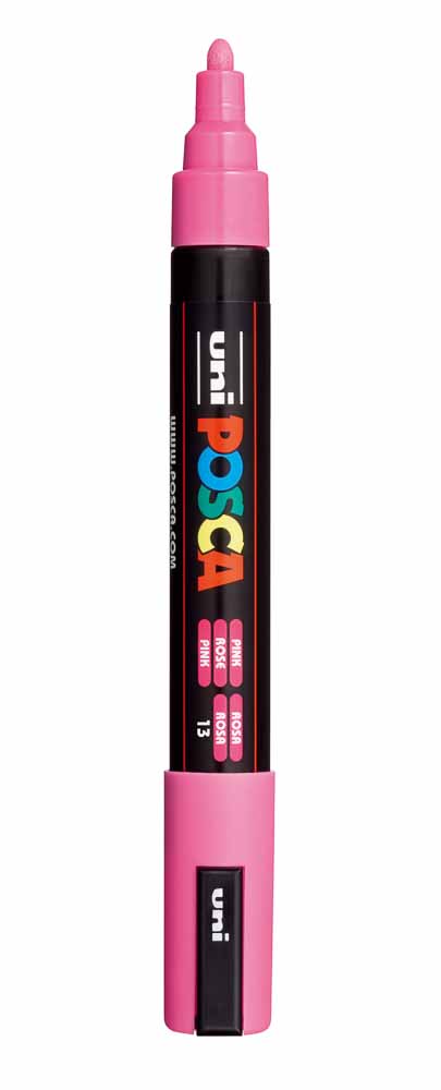 These markers have a versatile medium size fibre tip making them ideal for all types of art. Posca writes on virtually any surface; metal, wood, canvas, plastic, fabric, etc, and will not ‘bleed through’ paper. POSCA markers use water-based pigment ink to produce poster-paint-like vibrant colours. Posca is easily removed from glass, making it ideal for temporary signs and window art. Once dry, you can easily layer over the top to build your design and correct any errors. Alcohol and solvent free. Medium Bullet Tip 1.8 – 2.5mm