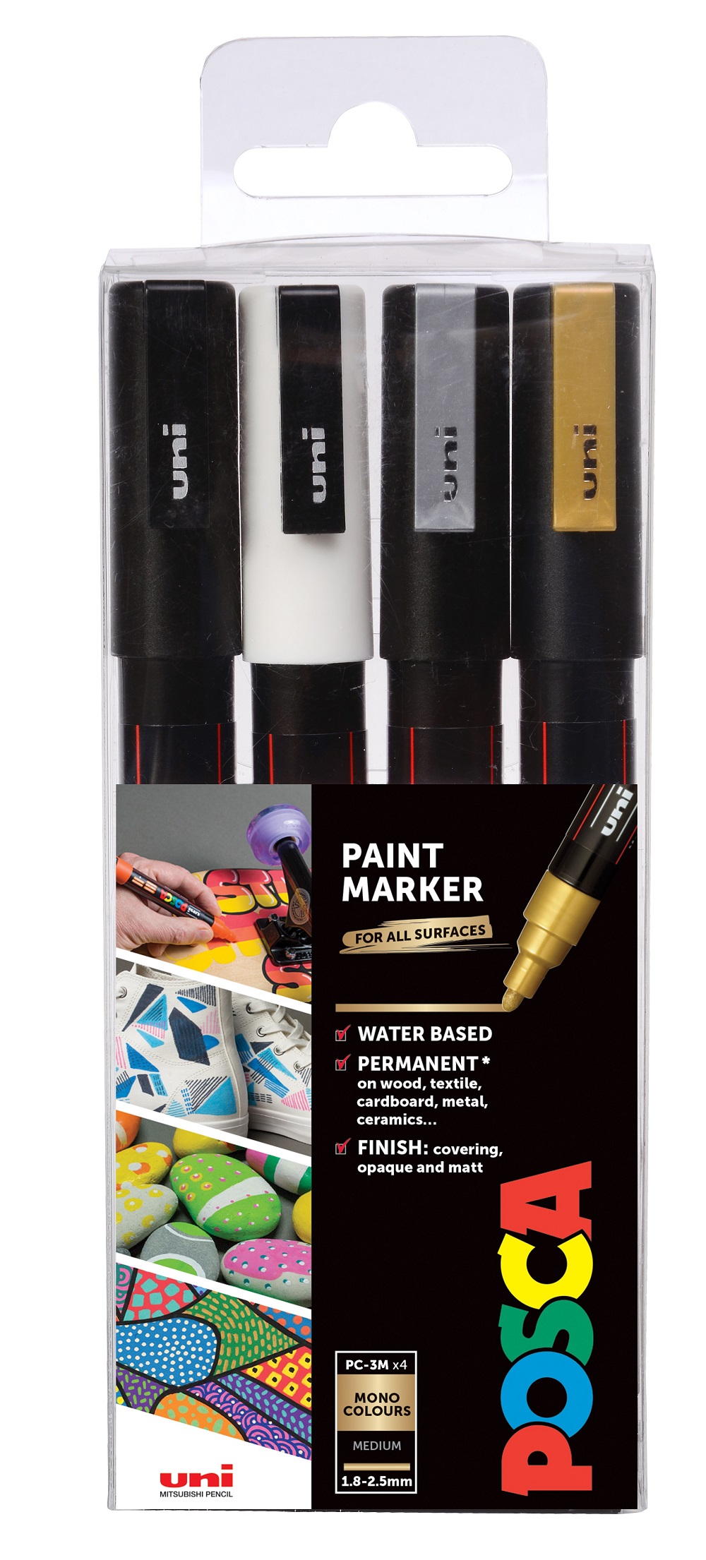 Posca PC-3M Fine Bullet Tip, set of 4 mono colour
