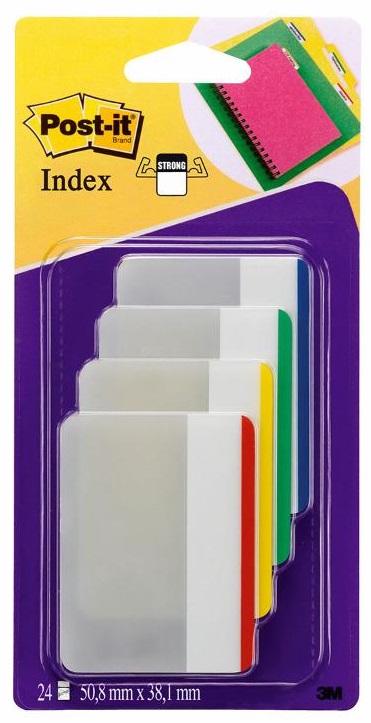 Post-it® Index Strong Filing Tabs, Large, 4 Assorted Colours, 4 Pads of 6 sheets