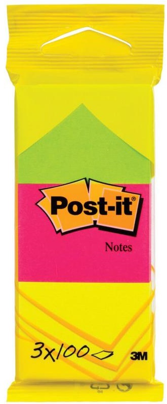Post-it® Notes 6812,Neon Range3 pads 38 x 51mm 100 sheets