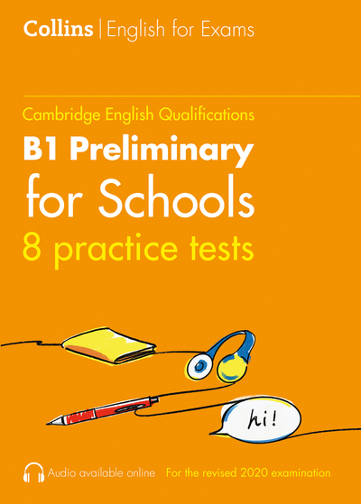 - All the practice you need for a top score in the Cambridge English B1 Preliminary for Schools qualification.With the realistic test papers and helpful advice in Collins Practice Tests for B1 Preliminary for Schools (PET for Schools), you will feel confident and fully prepared for what to expect on the day of the test. It contains:8 complete practice tests, fully updated for the revised 2020 exam specificationAnswer keys and model answersAdditional practice by topic - more sample questions to help you prepare for the Speaking paperDownloadable audio and audio scripts for the Listening and Speaking papersVisual materials for the Speaking paper, plus model answersA mini-dictionary of difficult words from the tests, taken from our COBUILD dictionariesWith Collins Practice Tests for B1 Preliminary for Schools, students will know what to expect from the real test:Material and layout has been carefully prepared to replicate the real testIntroduction contains a full guide to the different sections of the test, along with tips and practical advice on how to revise and prepare for the testSample answer sheets from Cambridge English are includedSuitable for Pre-intermediate and Intermediate students (CEF level A2-B1) preparing to take the Cambridge English B1 Preliminary for Schools (PET for Schools) qualification.