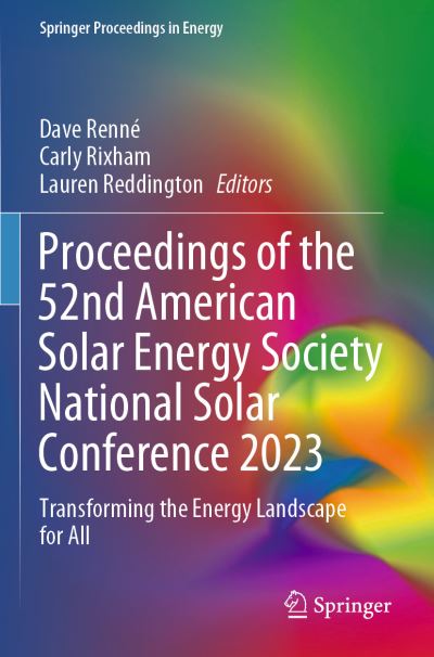 - This book highlights research presented during the American Solar Energy Society's 52nd National Solar Conference (ASES SOLAR 2023) held at the University of Colorado Boulder. The conference, with the theme of "Transforming the Energy Landscape for All" attracted a broad base of solar and renewable energy professionals and thought leaders, including researchers, architects, engineers, entrepreneurs, installers, manufacturers, economists, finance professionals, and policymakers - providing a platform for the exchange of ideas, information and business insights and unbiased perspectives on progress toward greater sustainability. These conference papers explore best practices and major roadblocks from a variety of perspectives in the transformation towards 100% renewable energy in the United States, focusing on the challenges to advancing renewables through principles of justice, equity, diversity, and inclusion (JEDI).