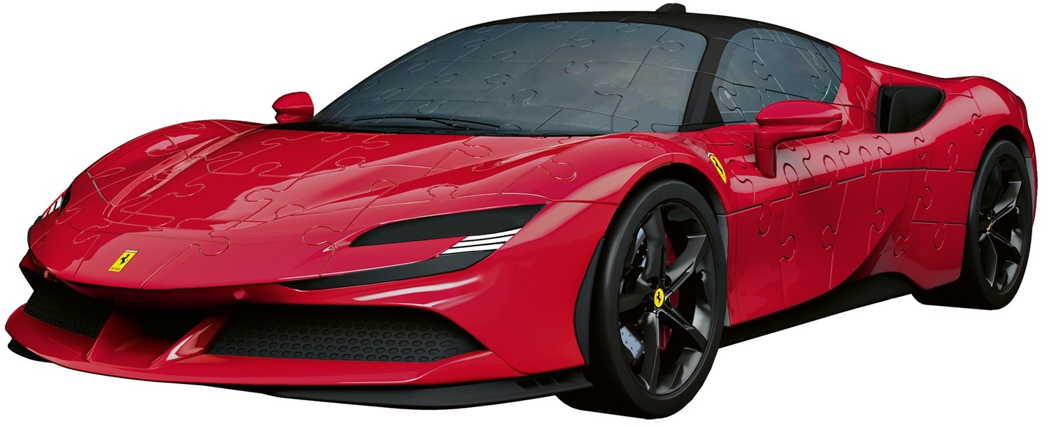 - The first ever Ferrari with hybrid drive technology as a stunning Ravensburger 3D puzzle: This SF90 Stradale is the perfect pastime for car enthusiasts. The truly three-dimensional jigsaw puzzle pieces create a detailed replica of the aerodynamic chassis. The numbering on the back of the pieces makes the assembly experience both relaxing and fascinating for adults and children age 8 and up. Incl. assembly instructions and interesting background information about the Ferrari brand and the SF90. The brilliant fusion of time-honored Ferrari tradition with state-of-the-art technology as a true-to-life 3D puzzle: The Easyclick technology ensures that the individually shaped plastic puzzle pieces fit perfectly and, together with the many premium accessories, create a true-to-scale 1:18 3D model of the serial-produced super sports car from Maranello – no glue required. Precision and accuracy - just like the original. The detailed, illustrated assembly instructions and the numbers and arrows on the reverse side of the jigsaw pieces make assembling the “Stradale” an equally relaxing and exciting experience for Ferrari fans young and old. An exceptional and decorative car model that should not be missing on the shelf of real Ferraristi! Whether as a single model or part of a collection of Ravensburger 3D puzzle vehicles – this red racing car is a real eye-catcher in any setting. Our 163 piece Ferrari Stradale 3D jigsaws are crafted with premium quality and when completed is 25 x 12 x 8cm. Great 3D puzzles for Children 8 years old and up. Fully complies with all necessary UK and EU testing standards.Warning! Not suitable for children under 36 months due to small parts which pose a choking hazard