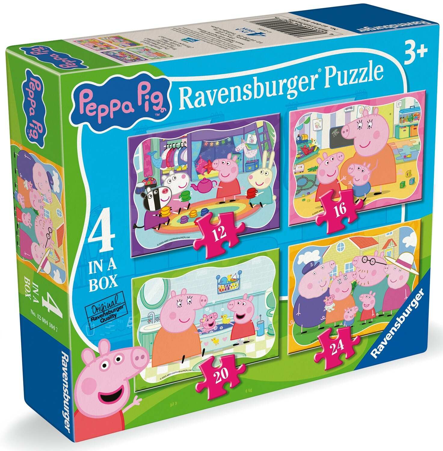 - This 12, 16, 20 and 24pc 4 in a box features the iconic Peppa Pig and her wonderful family in these four bright and colourful jigsaw puzzles, this puzzle pack is a must-have for any Peppa Pig fan. Our 4 in a box kids puzzles are crafted with premium quality materials and measure 19 x 14cm when complete. Great puzzles for Children 3 years old and up. Fully complies with all necessary UK and EU testing standards. Bestselling puzzle brand worldwide - With over 1 billion puzzles sold, our children’s jigsaw puzzles make ideal gifts for boys and great gifts for girls. Perfect toys for your child – Puzzles for toddlers and kids of every age help support a child’s development as they play, building skills such as concentration and creativity. #Positivelypuzzling - From fun family times together to long term health benefits and day-to-day mindful moments, there are so many positives about the humble Jigsaw! They make a great birthday gift or smashing Christmas gift.Warning! Not suitable for children under 36 months due to small parts which pose a choking hazard