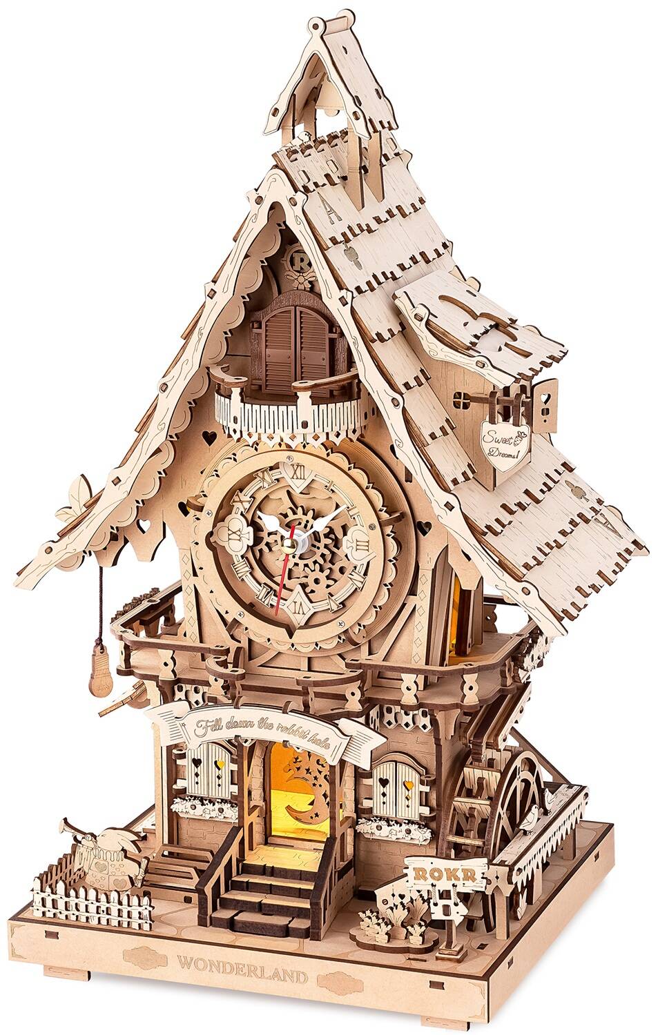 *Notes: Due to customs policy, glue and battery(AAA*3) may not be included in the package. Glue: You could use eco-glue, wood glue, or strong glue. <P>Telling the time is both easy and entertaining with the ROKR Cuckoo Clock. With a woodland cottage design and recognizable elements from fairy tales, this DIY puzzle clock is a feast for the eyes and the imagination.