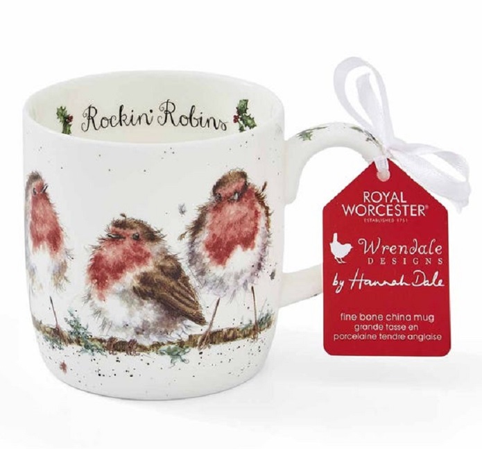 A wonderful festive gift. The image of three chirpy robins sitting together on a tree branch is taken from hand-painted designs by award-winning artist Hannah Dale. The Wrendale robin mug also features the words Rockin Robin on the inside, making it the perfect gift for a musical friend or family member this Christmas. The generous size makes the mug ideal for enjoying a much-needed morning cup of coffee or a relaxing festive hot chocolate in the evening. This Royal Worcester robin mug is made from fine bone china, but can still be popped straight into the dishwasher after use to be cleaned.