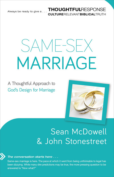 - Same-sex marriage is here, presenting unique challenges and opportunities. How do those who follow Christ faithfully answer the standard talking points for same-sex marriage? And how can they best articulate the case for one-man, one-woman marriage in everyday conversation? Sean McDowell and John Stonestreet believe a thoughtful approach to God's design for marriage is the answer to both questions. The key is not a contentious attitude towards those who believe in same-sex marriage, but a winsome perspective that is faithful to Christ, committed to truth, and shaped by a love for God and others. Christians need to know that because Christ has risen, there is no such thing as "all hope is lost." They are still called to engage culture even if they are viewed as wrong, illegal and intolerant.