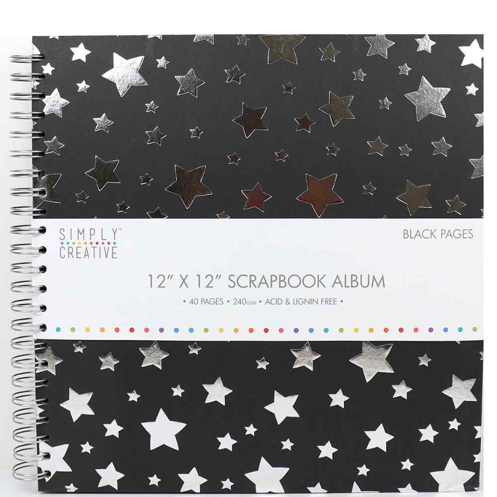 Make your layouts twinkle with this Simply Creative 12x12 inch black scrapbook album adorned with a flurry of silver foil stars. The sparkling design is perfect for holding your chosen memories from a variety of occasions.