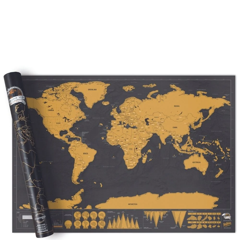 The more stylish sister to Scratch Map® Original map – Scratch off Map Deluxe map comes with copper foil printed on beautiful matte finish black paper. Our most detailed map.