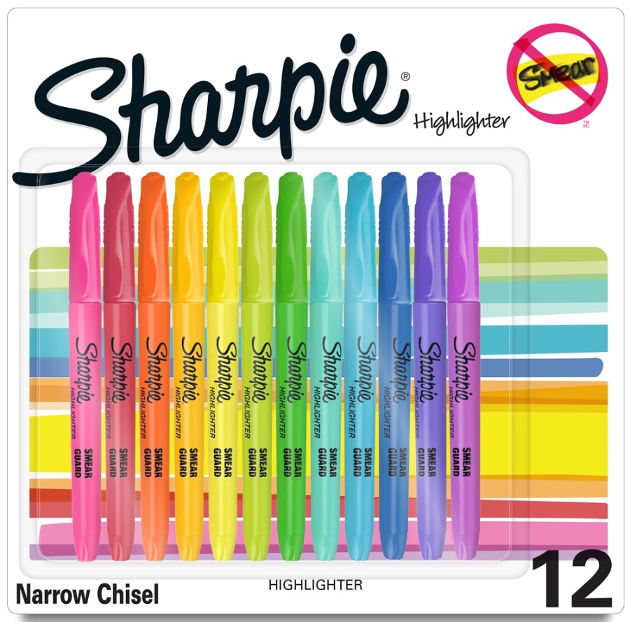 • Super slim so they’re easy to control, light on your hands and easy to store, Sharpie Pocket highlighters are perfect for all-day study sessions