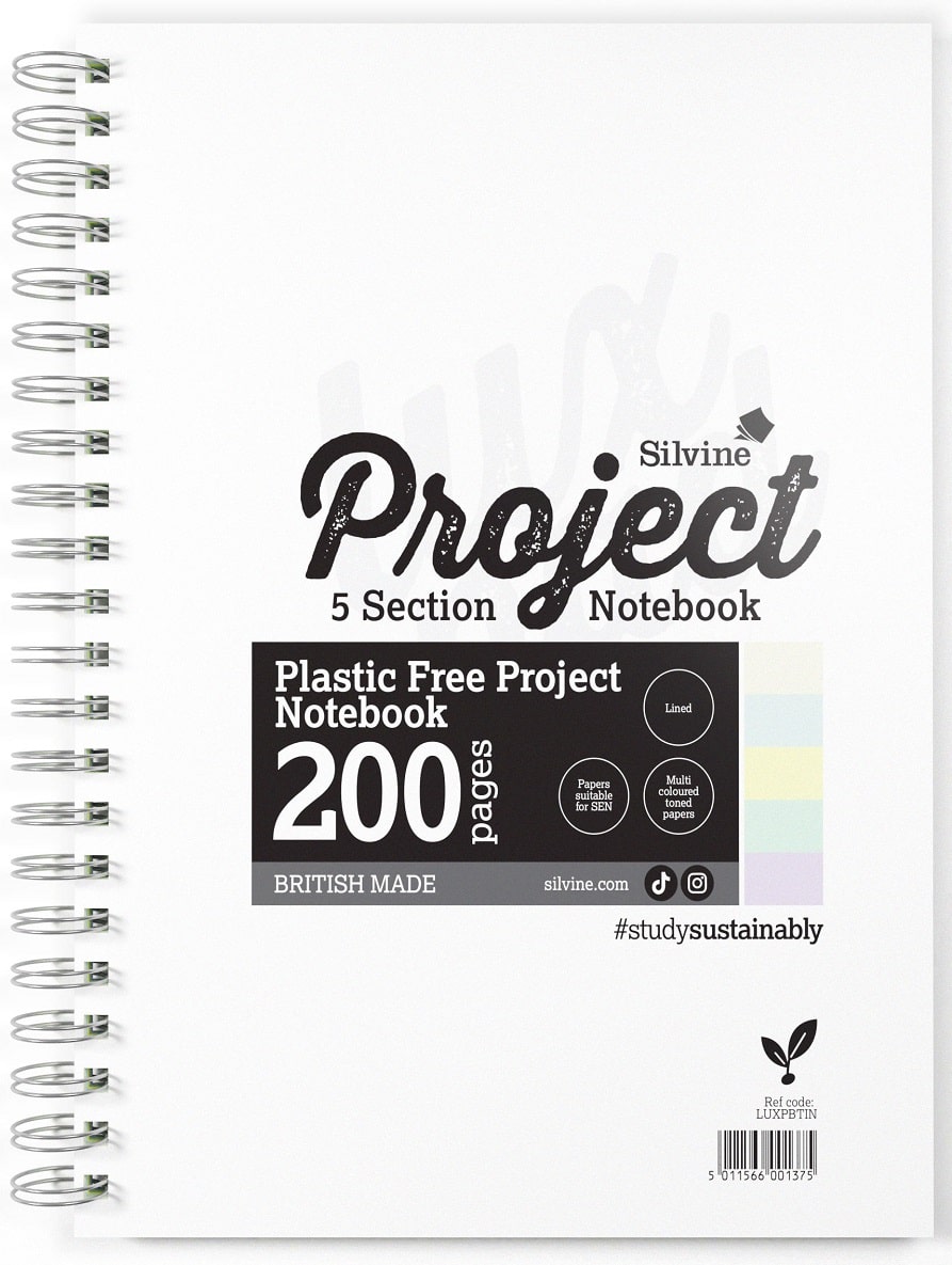 Stay organised with this plastic free, A4+ project book from Silvine. Featuring 200 pages, lined with margin in 5 tinted colour sections - blue, cream, green, violet and yellow. In addition to colour coordinating your notes, the tinted papers also help in assisting memory aid and SEN supportive learning. The twin wire binding allows the notebook to lie flat and makes it easier to write on, while the micro-perforations allow you to neatly remove pages with ease.