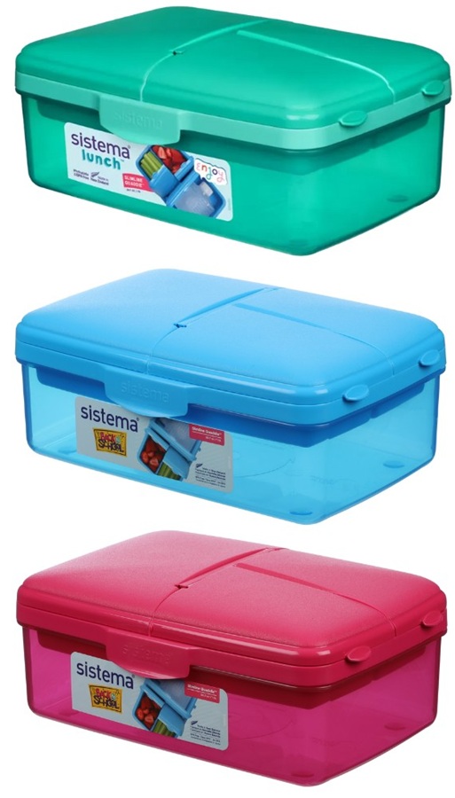1.5L Slimline Quaddie - The Sistema® Lunch Slimline Quaddie™ is perfect for transporting your lunch and snacks to work, school or the park while helping to cut down on using plastic bags, cling film and foil. Simply place your food into the container and close the compartments to keep food fresh. Brighten up your lunch time with the colourful Sistema® Lunch Slimline Quaddie™. Featuring multiple compartments with a 275ml Bottle, it’s simple to keep your food fresh and separate until ready to eat. This product is safe to use in the dishwasher (on the top rack), the microwave (with the lid open), or in the fridge and freezer.