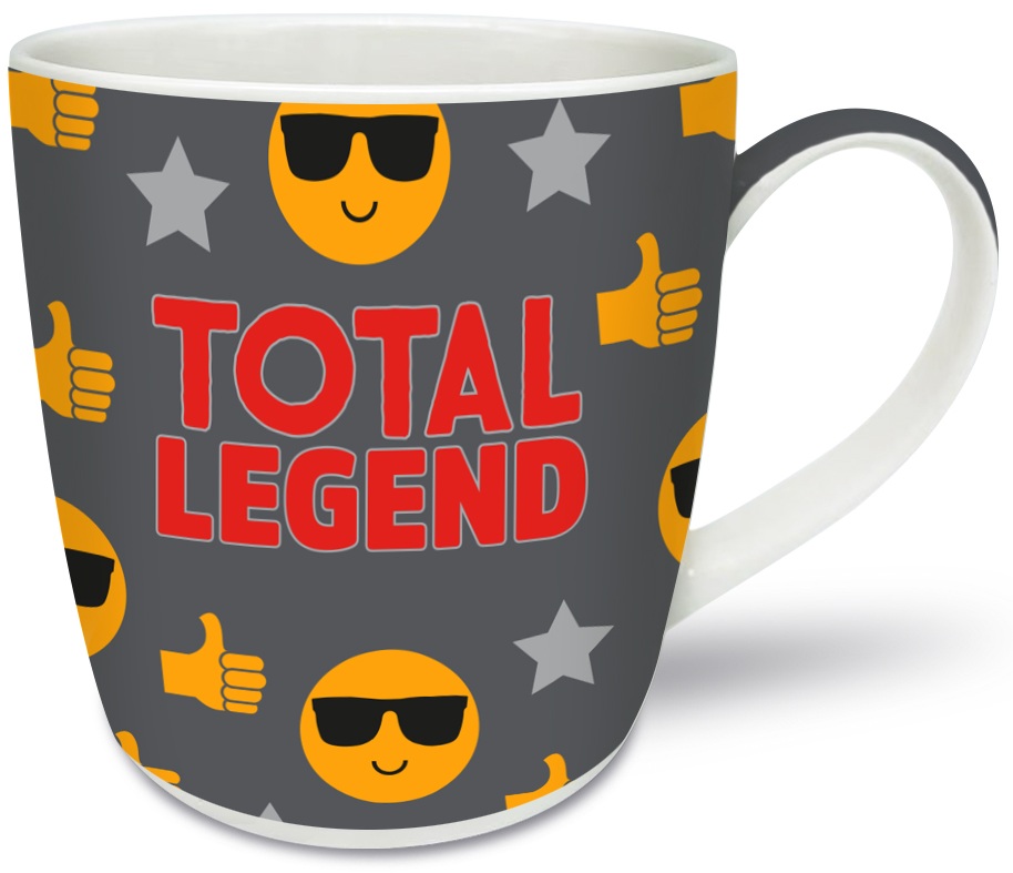 A standard size ceramic mug supplied with gift box message reads Total Legend