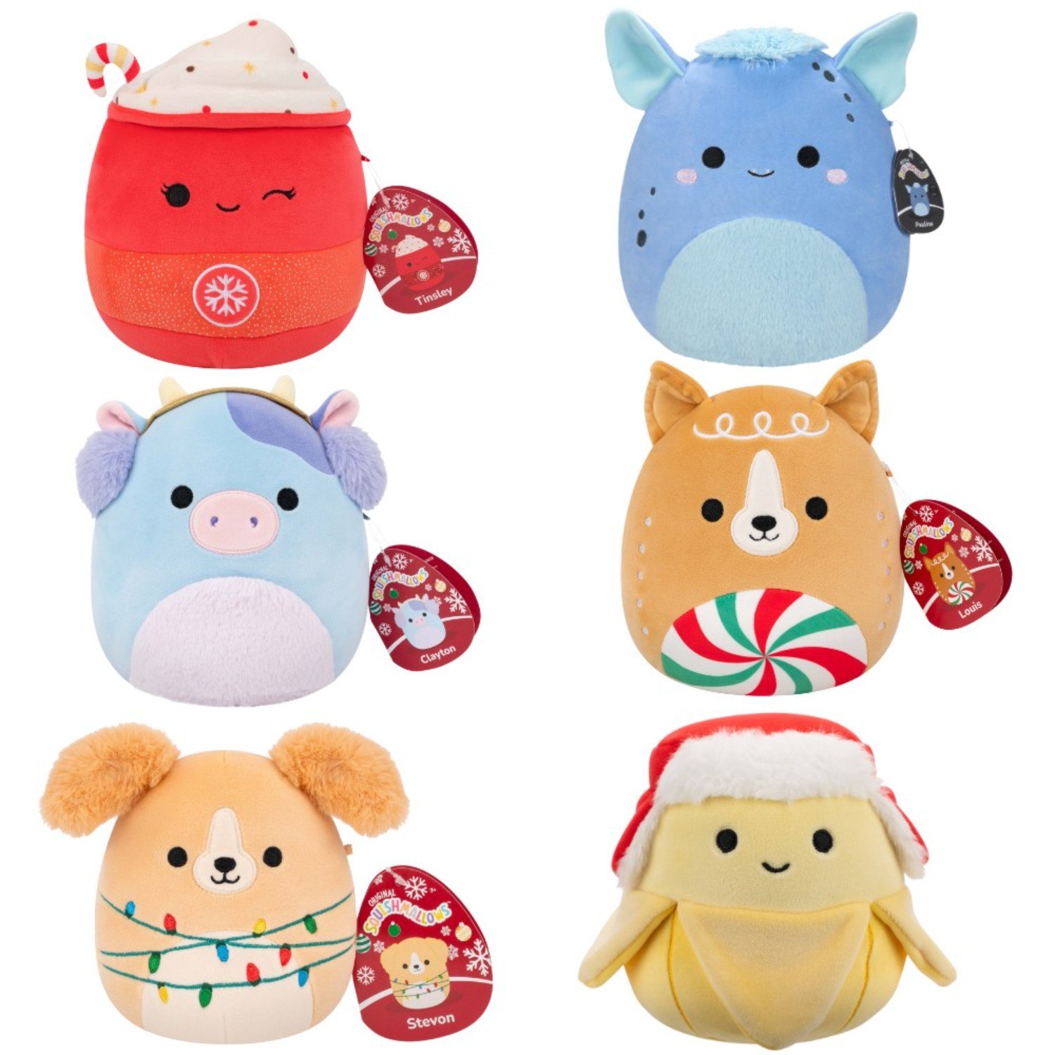 - Add these 7.5-Inch Holiday Squishmallows plush to your Squad! Each Squishmallow plush comes with its own unique name and bio and makes the perfect cuddly companion for comfy nights in or long flights out. These premium plush are perfect to add to your Squishmallows collection, whether you’re already an avid collector or new to the Squishmallows Squad! Join the Squad! There are several styles available within this assortment, and unfortunately, it is not possible to request which one you would prefer.